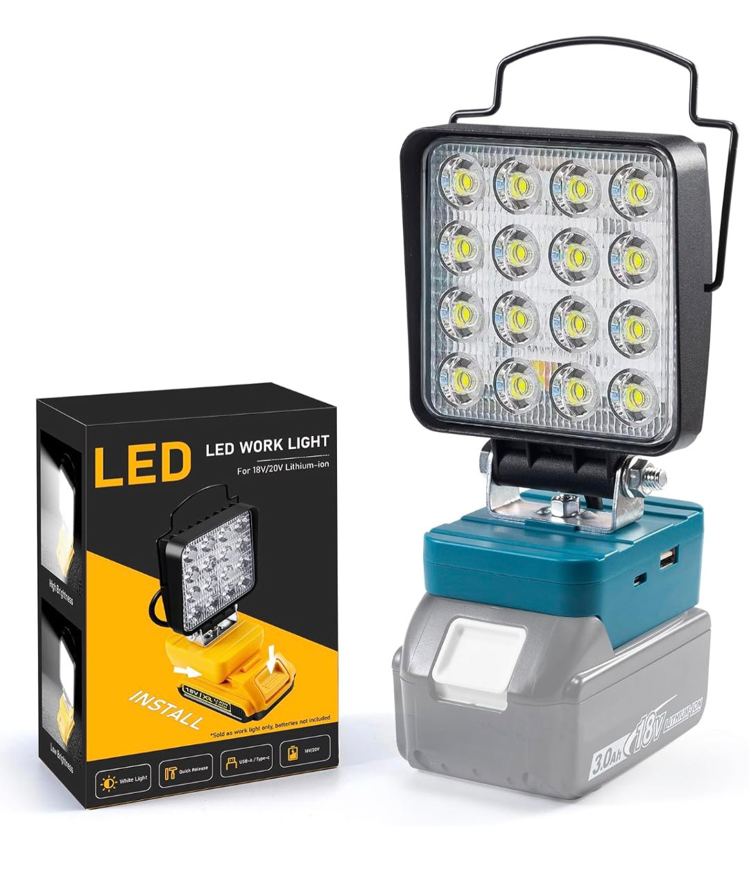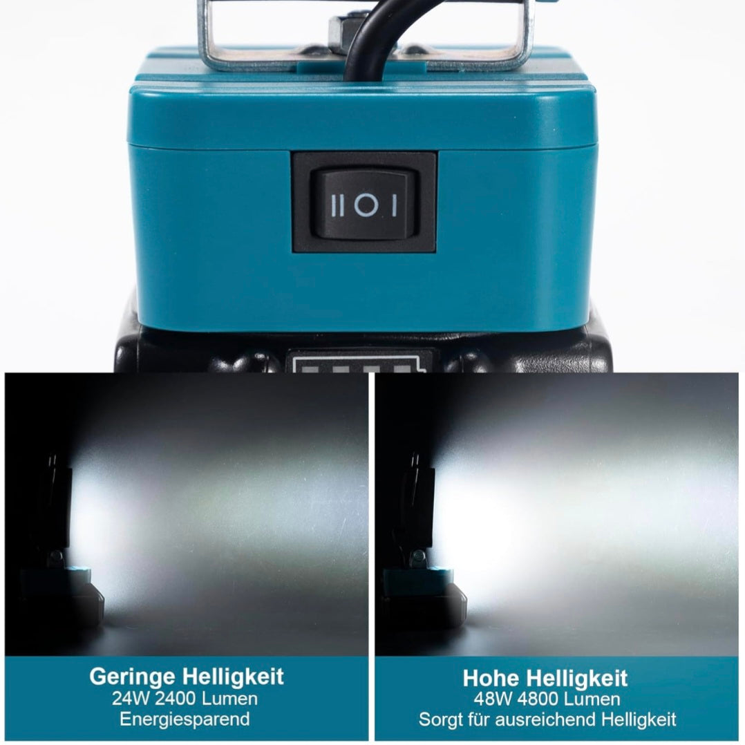 Akku Lampe passend zu Makita 18V, 48W 4800LM Kabellose Led Arbeitsleuchte Akku, Tragbare Flutlichter mit 2 Modi Helligkeit Mini Baustellen Lampe für Wartungsarbeiten, Camping