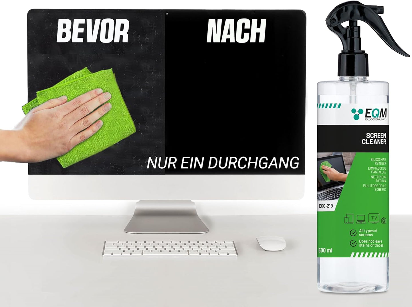 - ENTFERNT FETT, FLECKEN UND ABDRÜCKE: ECO-219 reinigt alle Arten von Bildschirmen effektiv und entfernt Fett und Fingerabdrücke. Es bewahrt die Beschichtung des Geräts, hinterlässt keine Streifen und hält die Oberfläche makellos
