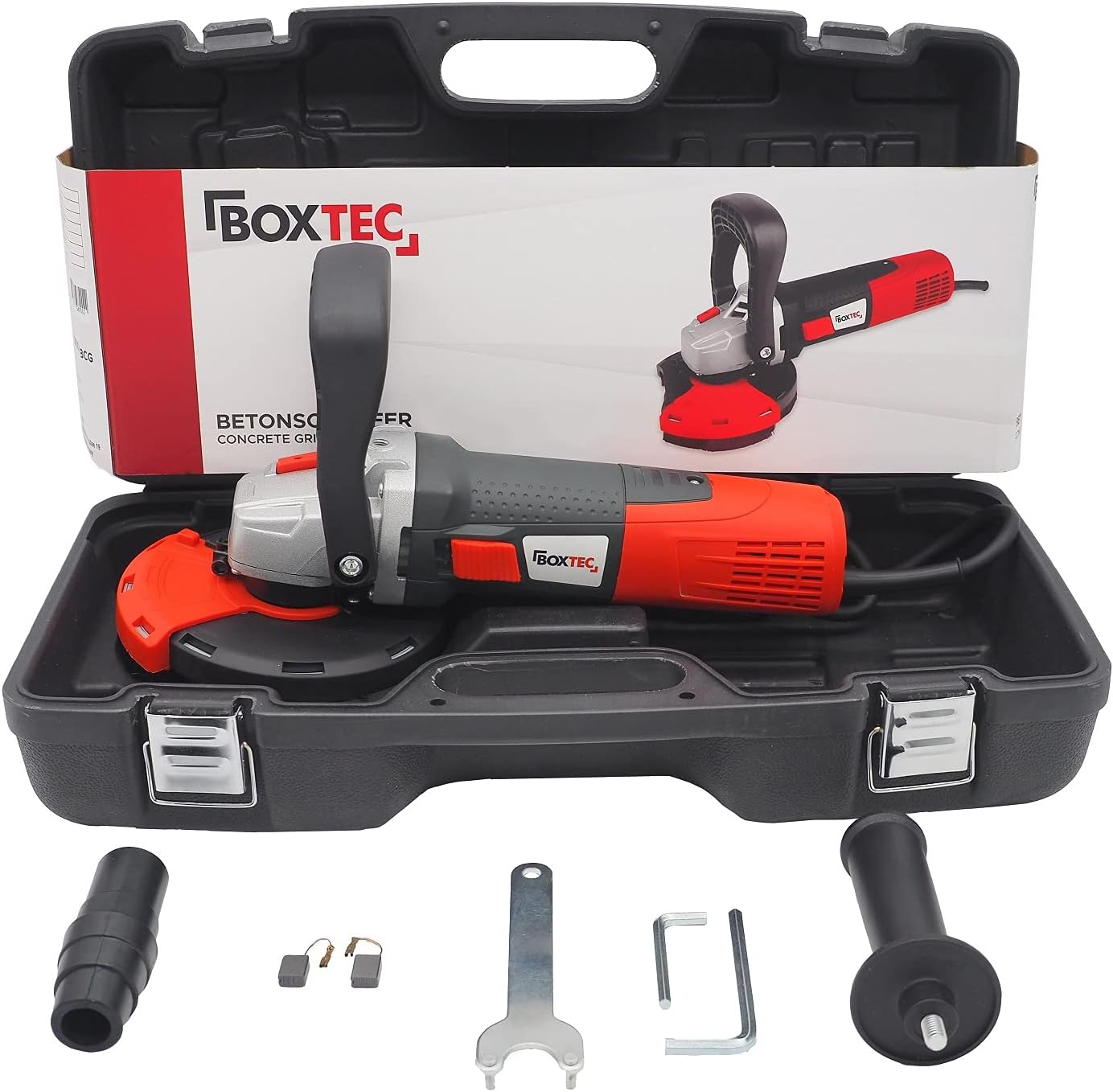 BOXTEC Betonschleifer 125 mm Sanierungsfräse Betonfräse 1.400W mit Drehzahlregelung und Absaughaube