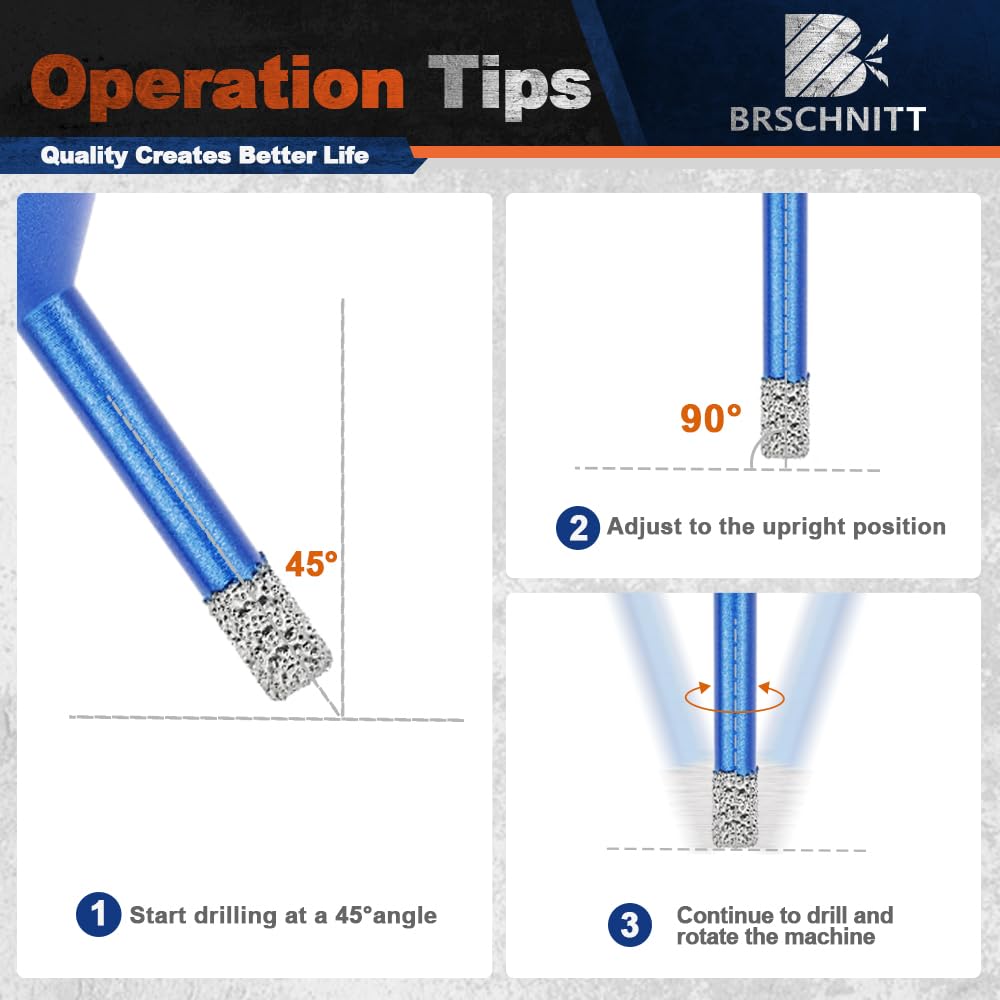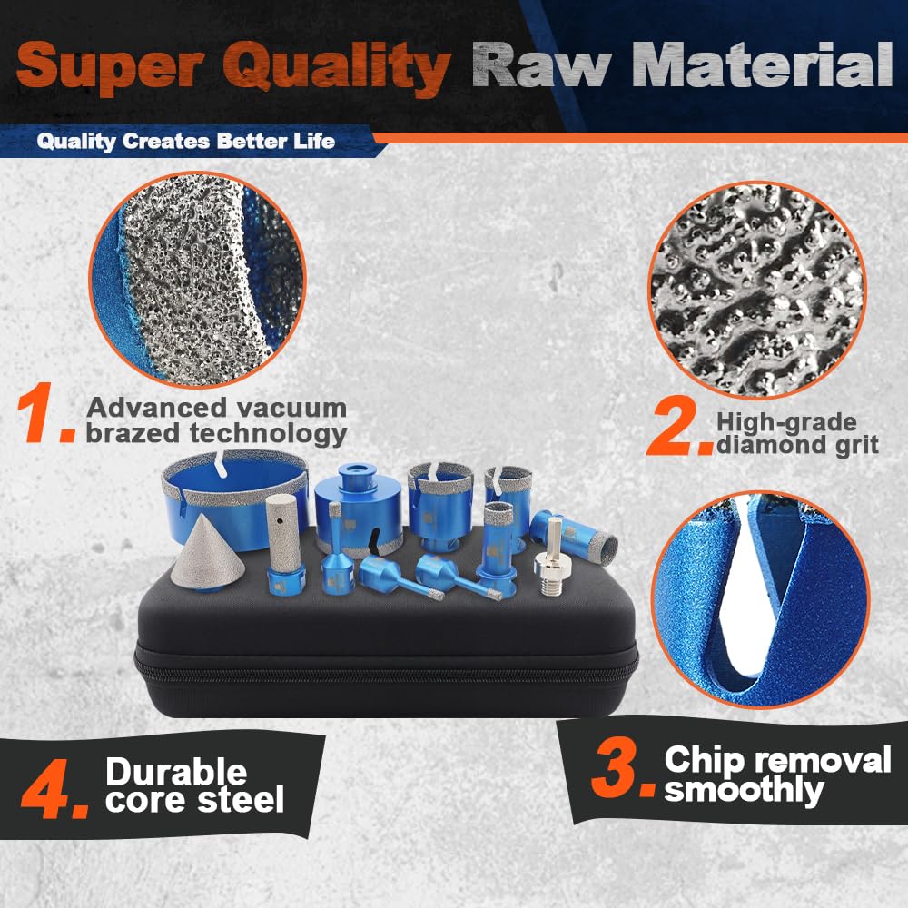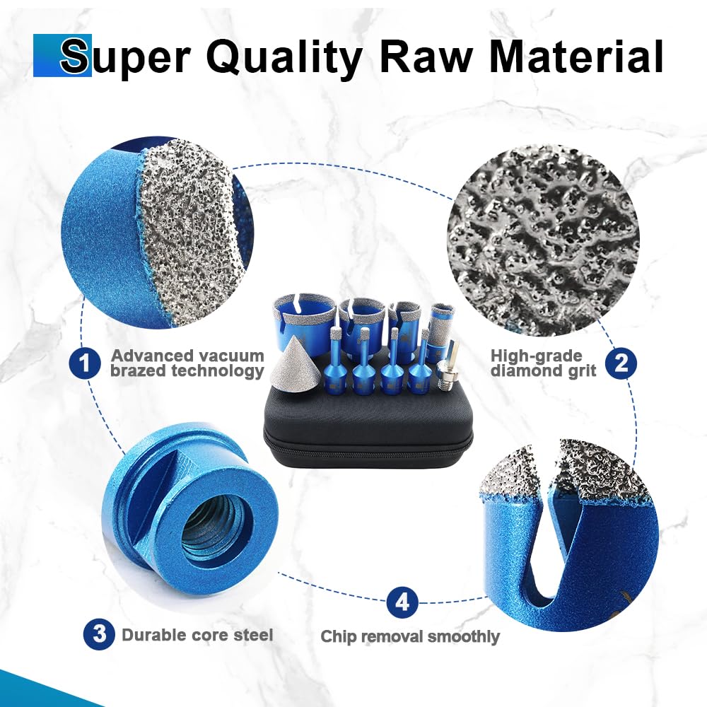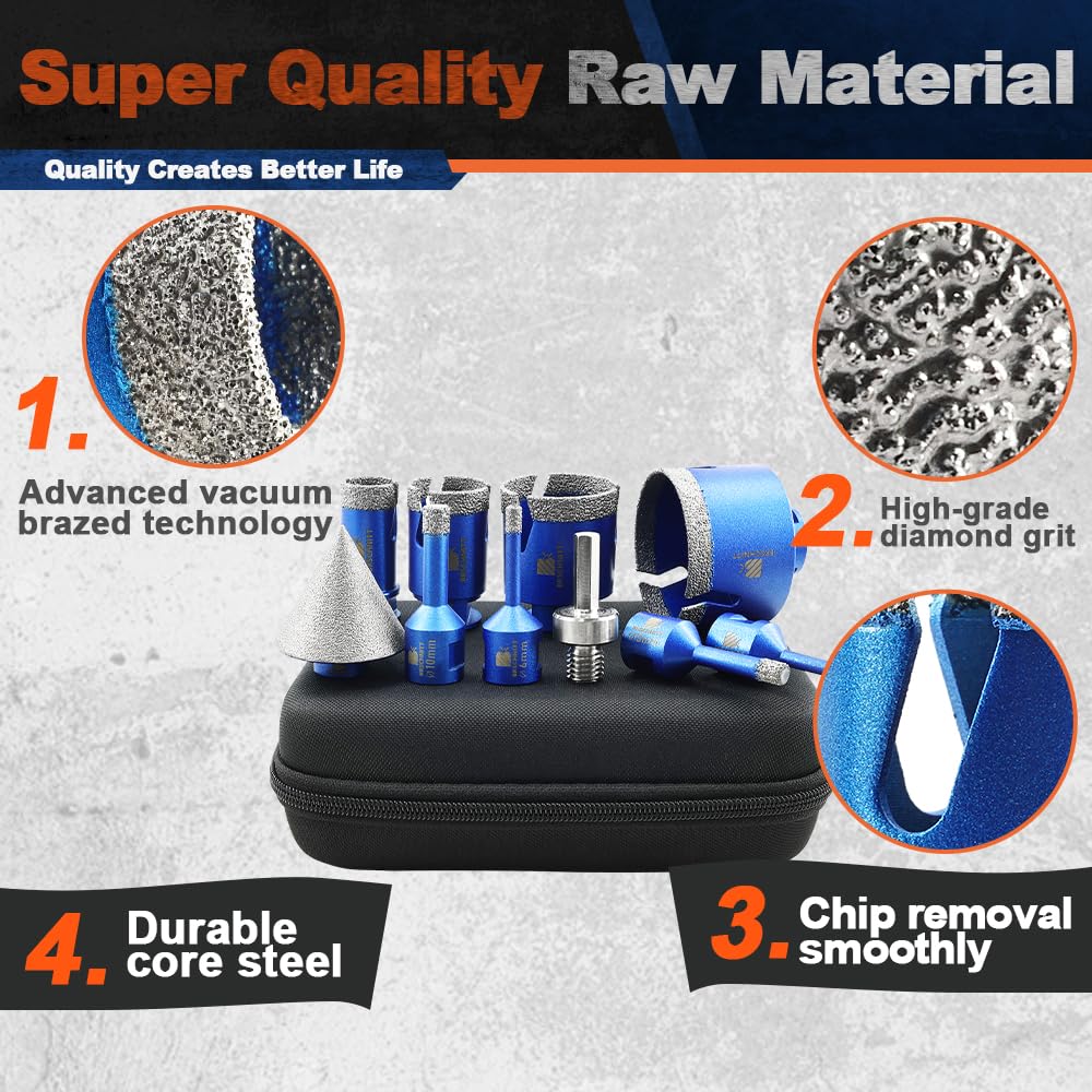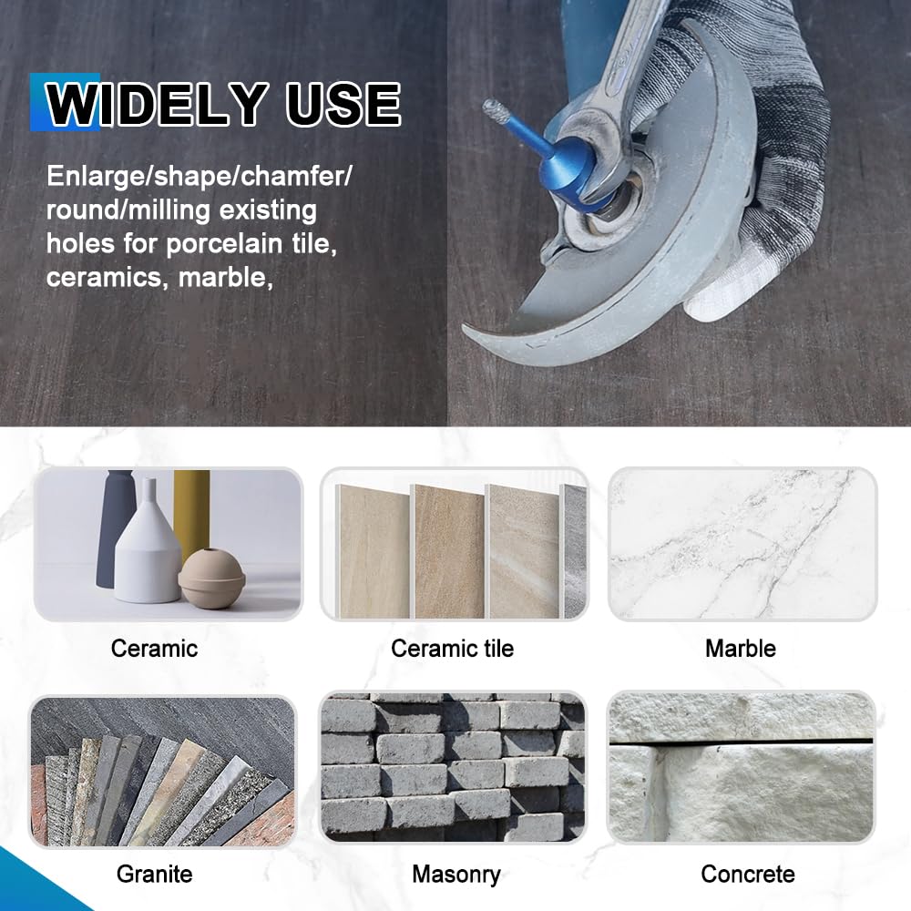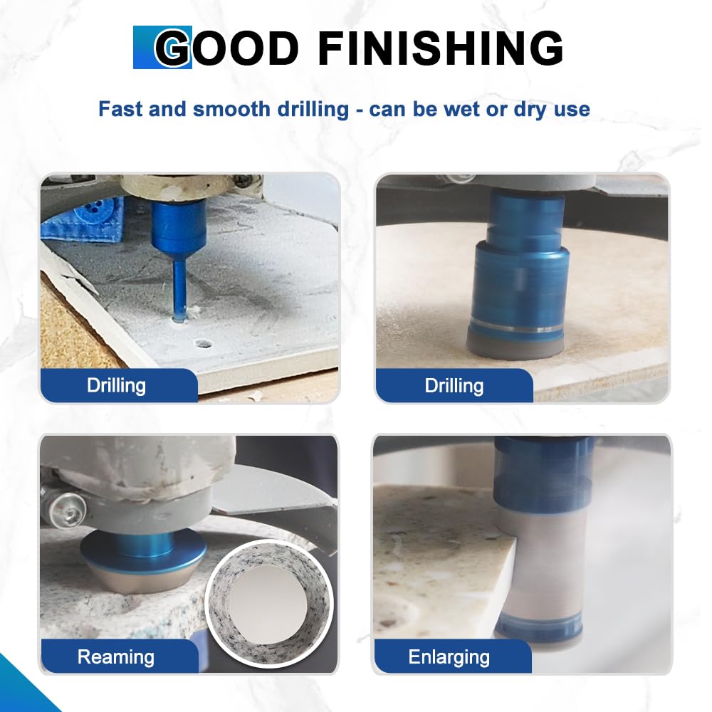 - ✔ Breites Anwendungsspektrum - Diamantbohrer eignen sich hervorragend zum Trockenbohren von Löchern in Hartporzellan, Keramik, Badezimmerfliesen, Granit und Marmor, Mauerwerk, Beton, Glas und Hartplastik. Die Verwendung von Wasser könnte die Lebensdauer verlängern