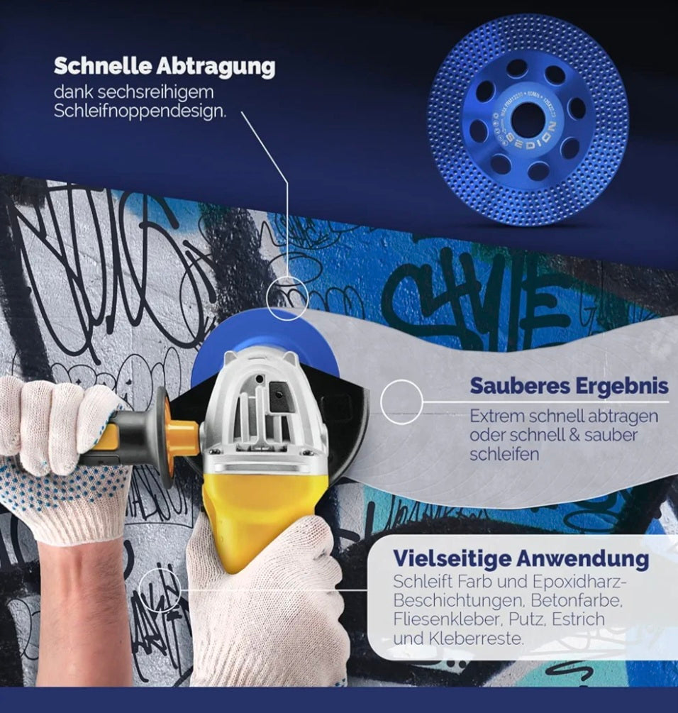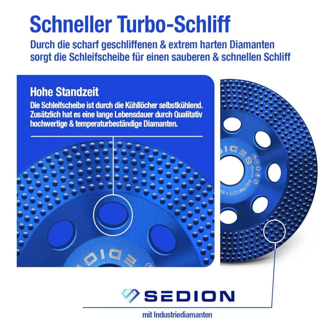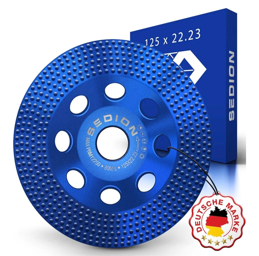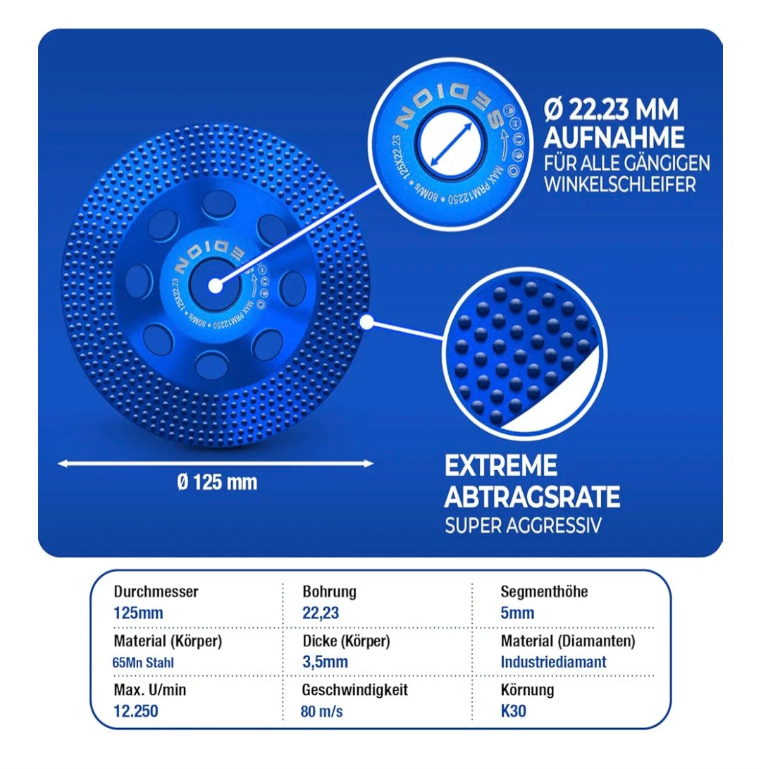 Diamant Schleifteller 125mm - fรผr Fassadenfarbe, Holzfarbe, Epoxidharz Beschichtungen uvm. - Diamantschleiftopf 125 mit Vacuum Diamantbelag - Sedion Premium Qualitรคt - Diamantscheibe 125mm