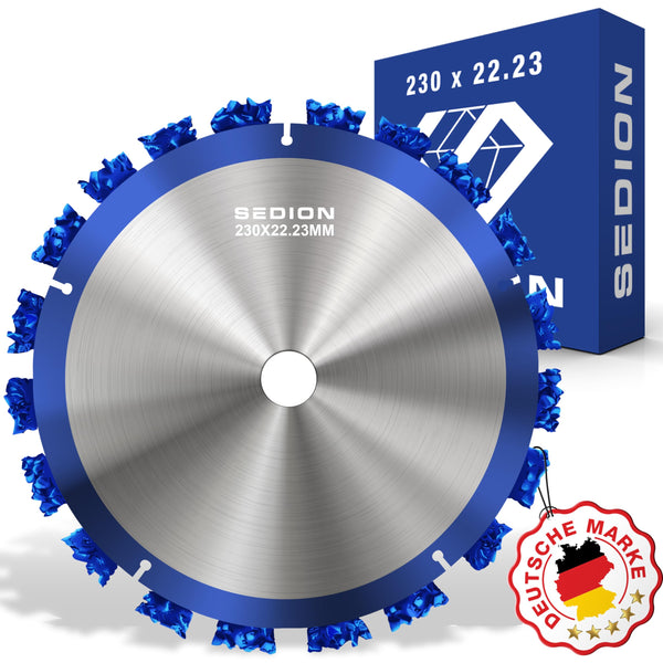 SEDIONยฎ Trennscheibe fรผr Holz 230mm - gehรคrtete Scheibe zum Trennen von Holz und Wurzel - 230mm x 22,23 - Premium Qualitรคt - Hartmetall-Trennscheibe - Entferner und Wurzelentferner fรผr Baumwurzel