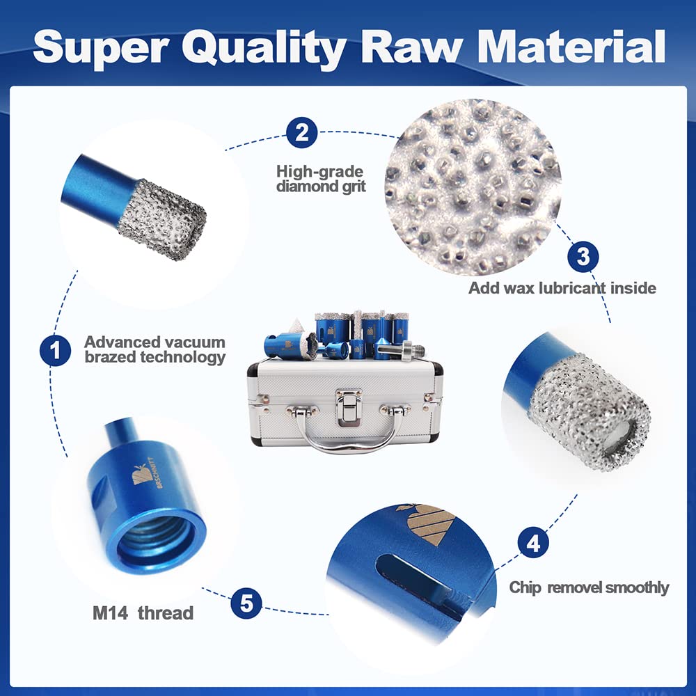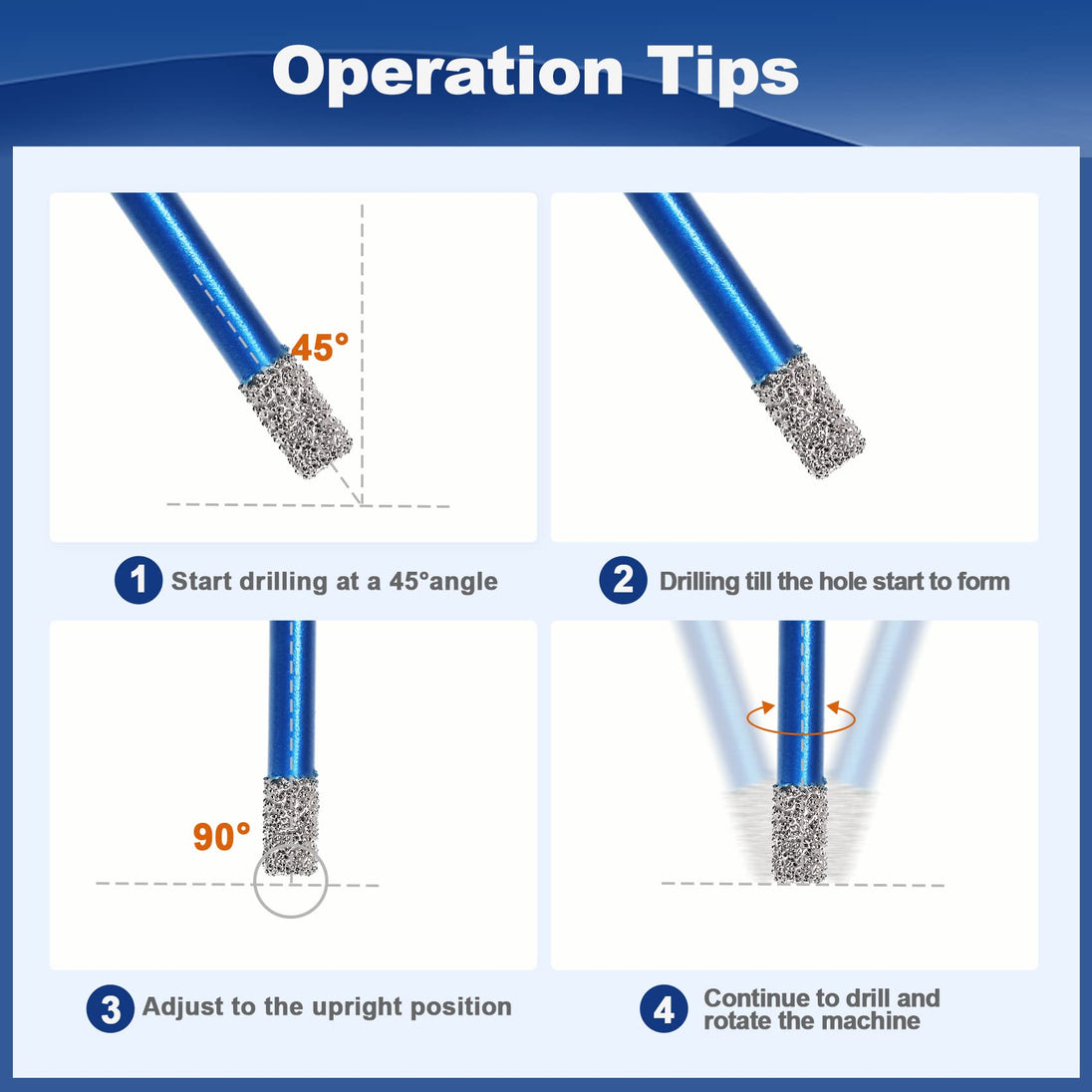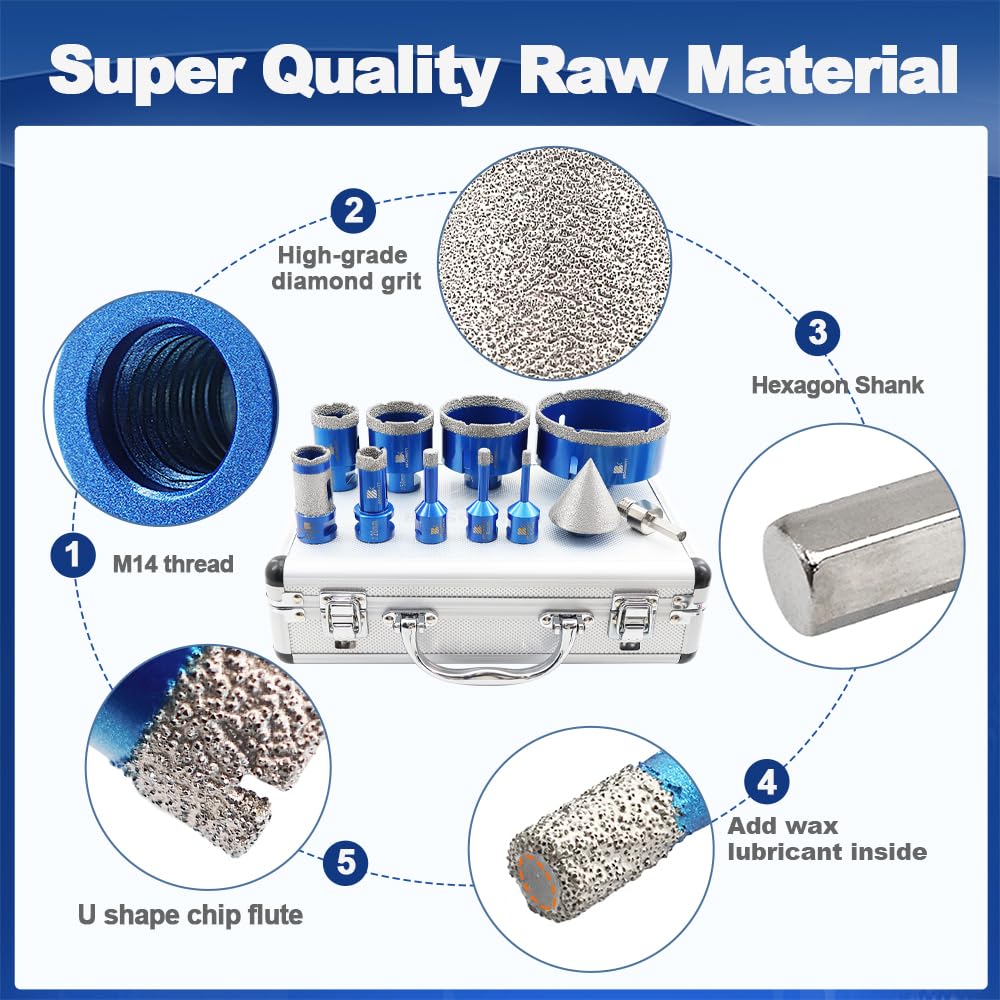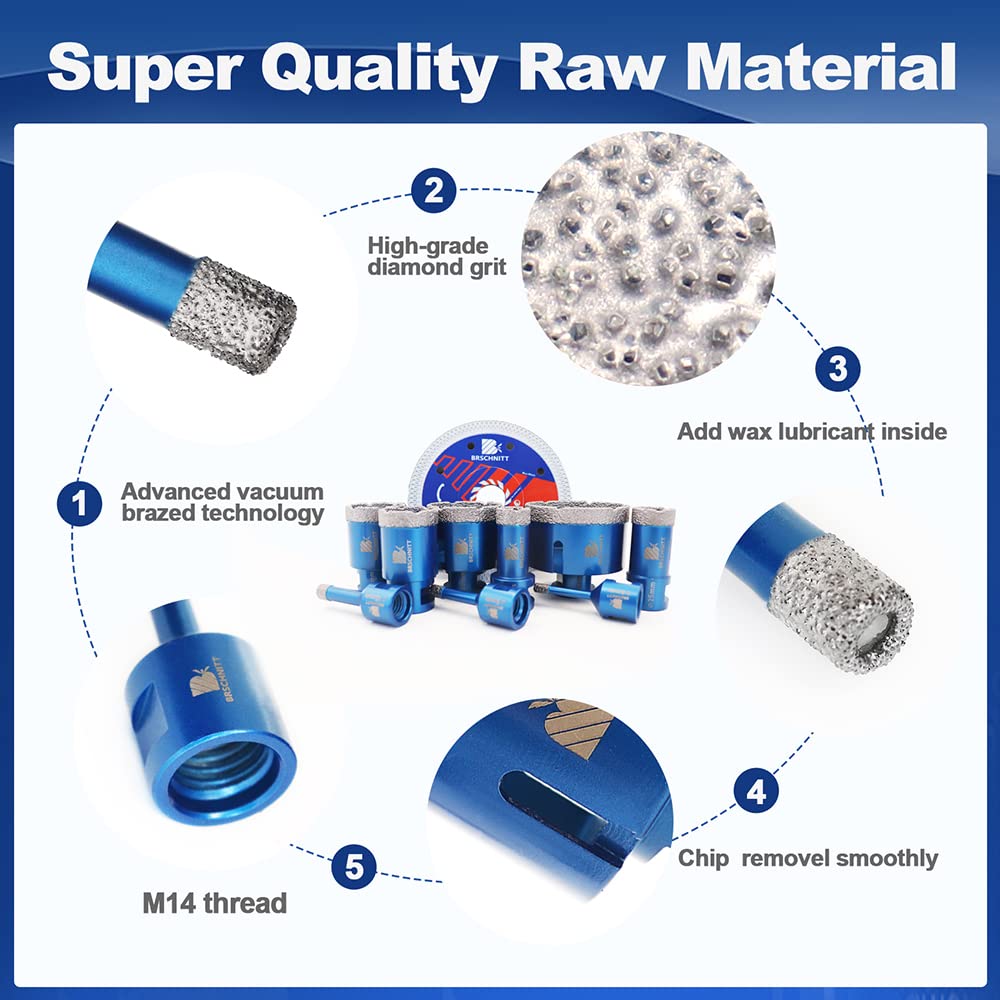 - ✔Breite Anwendung des Bohrers – Funktioniert hervorragend für Porzellanfliesen, Keramik, Badezimmerfliesen, Marmor, Granit, Stein, Mauerwerk und Ziegel. Die Verwendung von Wasser kann die Lebensdauer verlängern