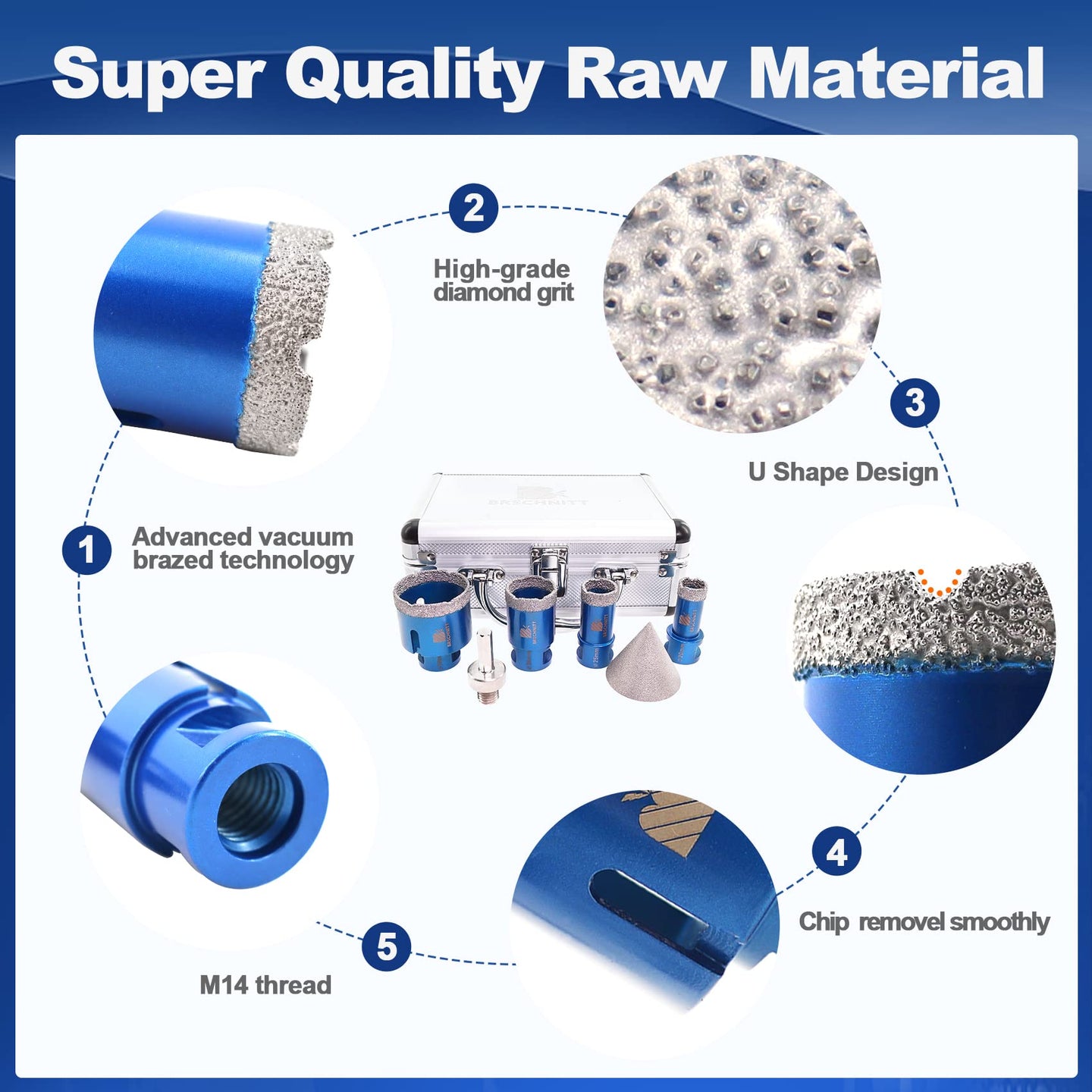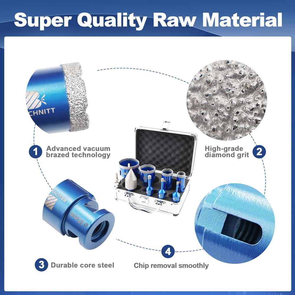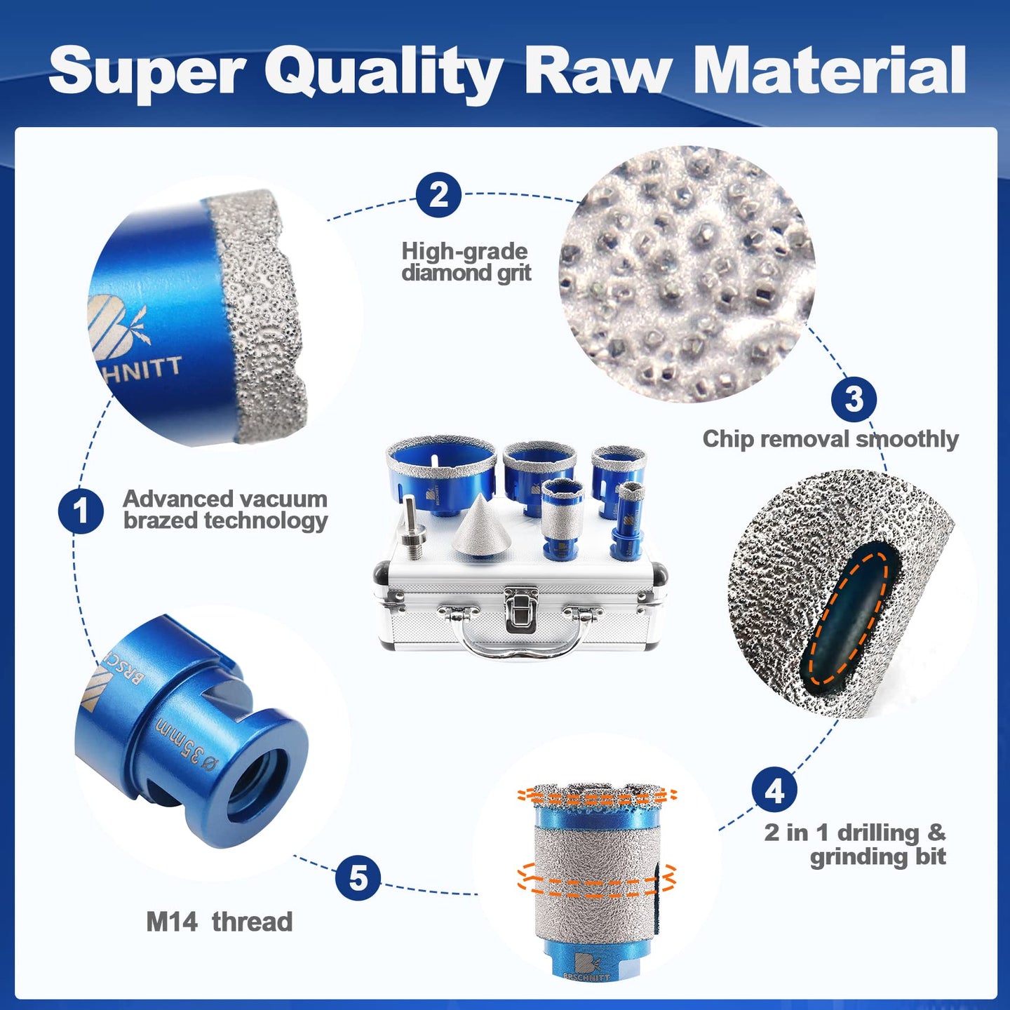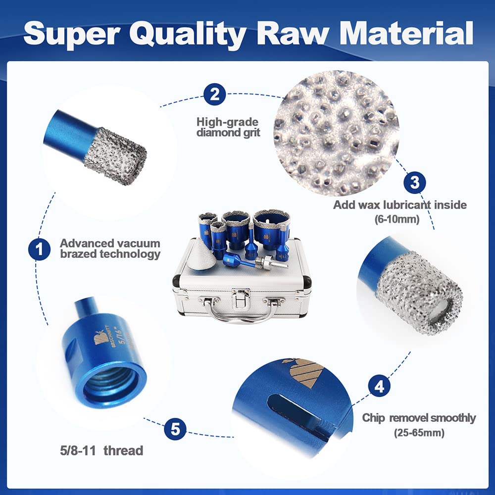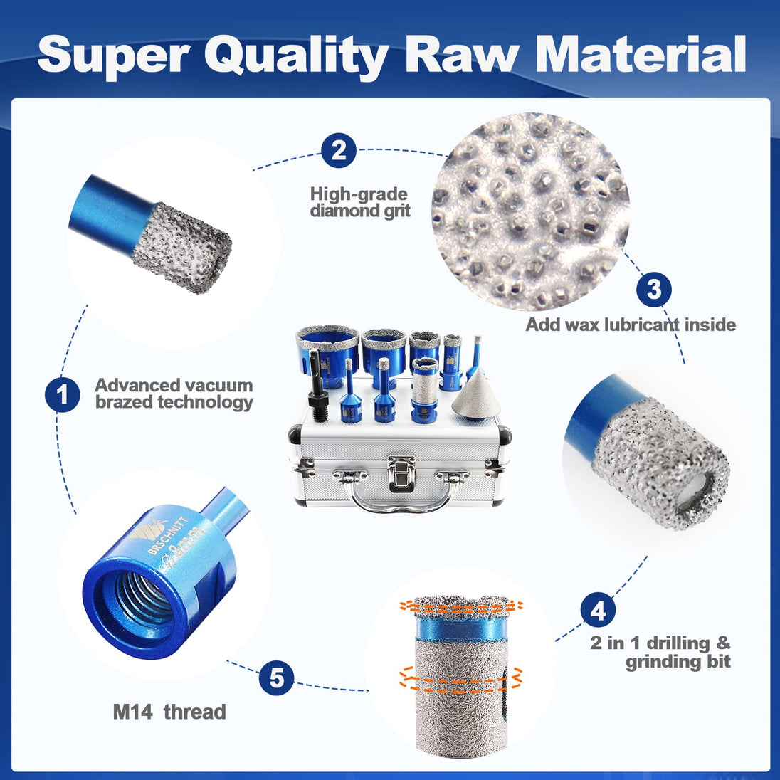 - ✔Breite Anwendung des Bohrers – Funktioniert hervorragend für Porzellanfliesen, Keramik, Badezimmerfliesen, Marmor, Granit, Stein, Mauerwerk und Ziegel. Die Verwendung von Wasser kann die Lebensdauer verlängern