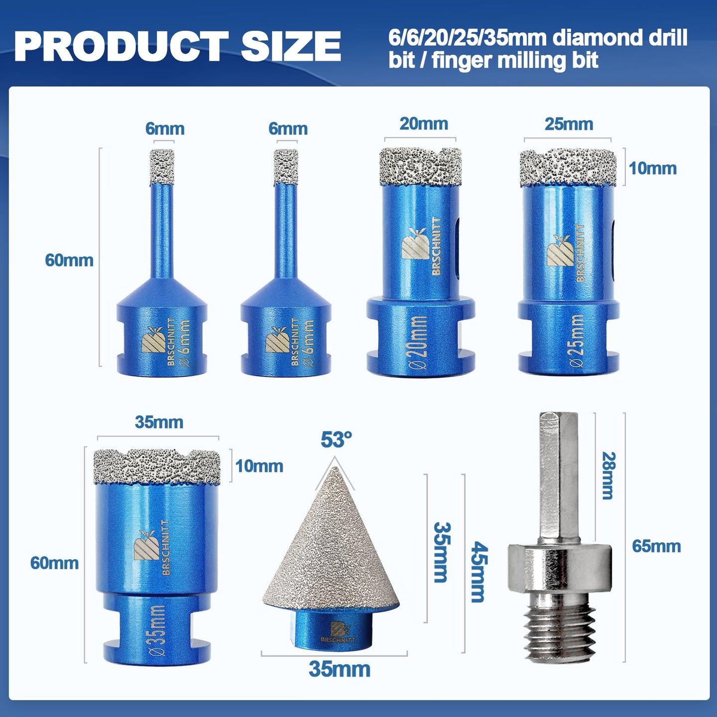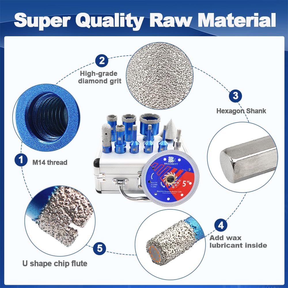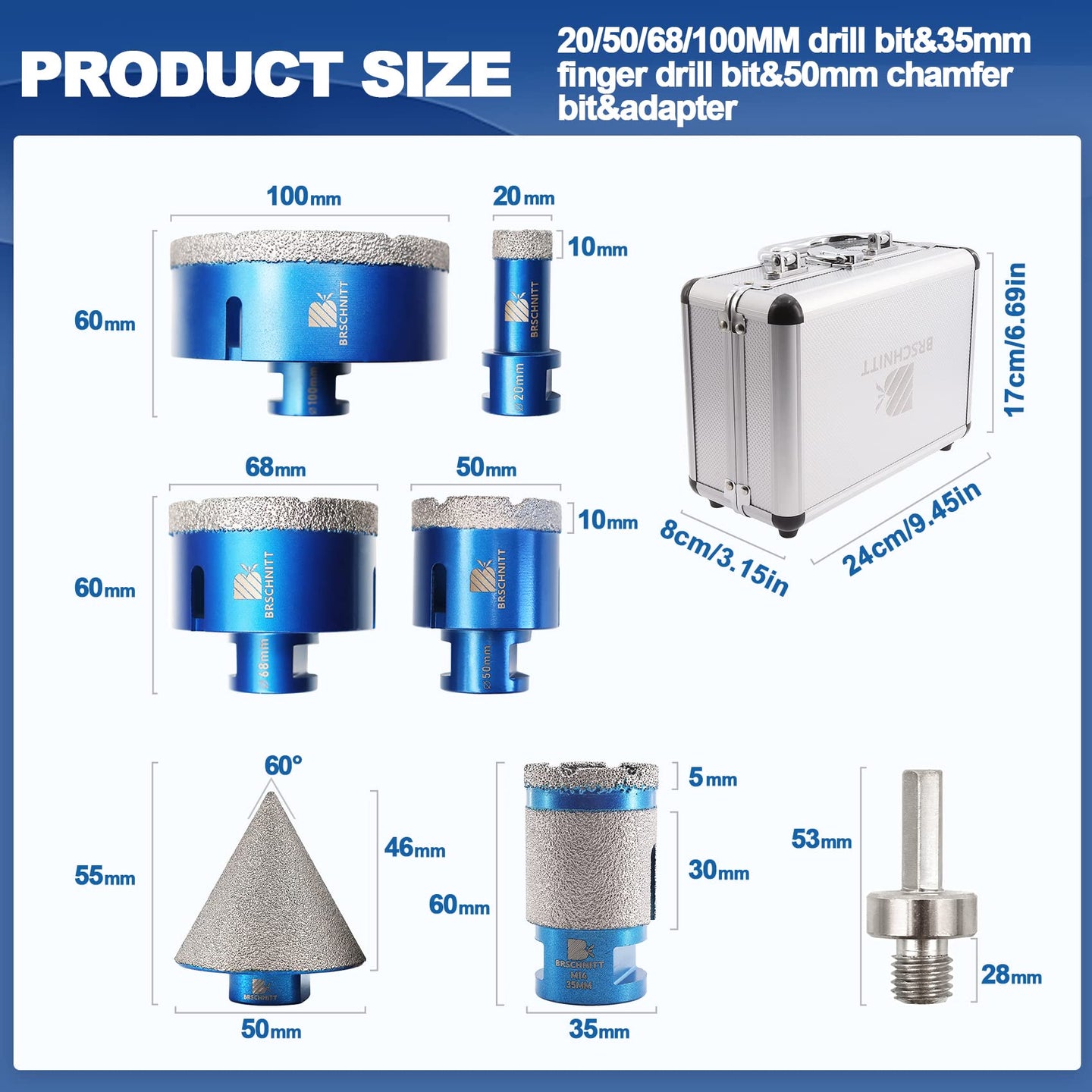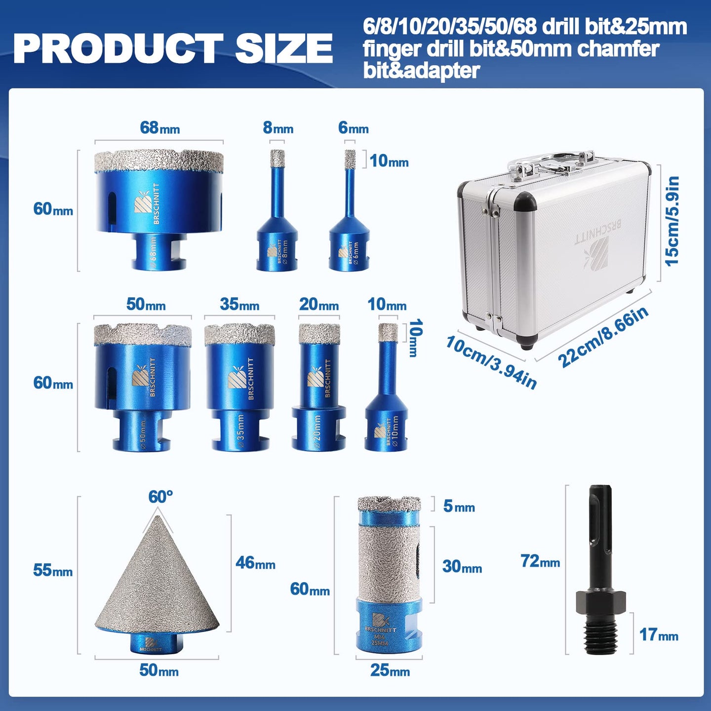 Diamantbohrer Fliesenbohrer Set - BRSCHNITT 6/8/10/20/25/35/38/50/68mm Diamant-Bohrkrone Lochsäge mit Diamant Trennscheibe 125mm