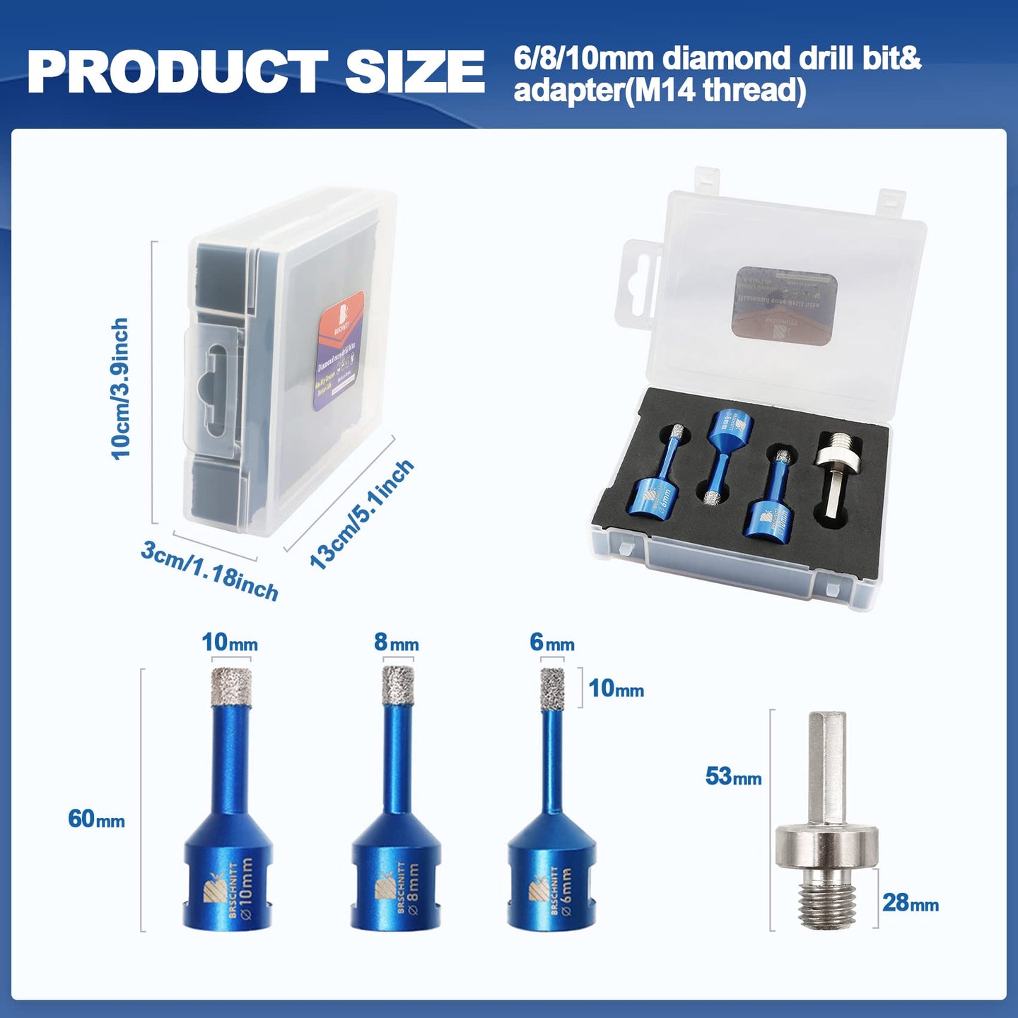 - ✔ Größe Diamantbohrer: 6 8 10 20 25 35 38 50 68mm, Rautenhöhe 10mm, Gesamtlänge 60mm, M14 Gewinde"