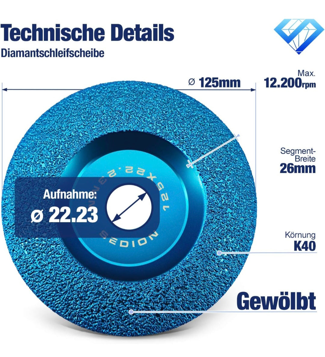 Diamant Schleiftopf Ø 125mm Turbo Segment Beton Naturstein Schleifscheibe Profi Werkzeug