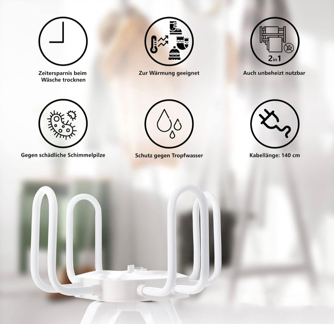 ☑️ 2 IN 1 - Elektrisch beheizt für schnellere Trocknung oder Aufwärmung, nicht beheizt, ist der Schuhwärmer als normale Schuhablage nutzbar. Für Schuhe, Handschuhe, Schals und vieles mehr.