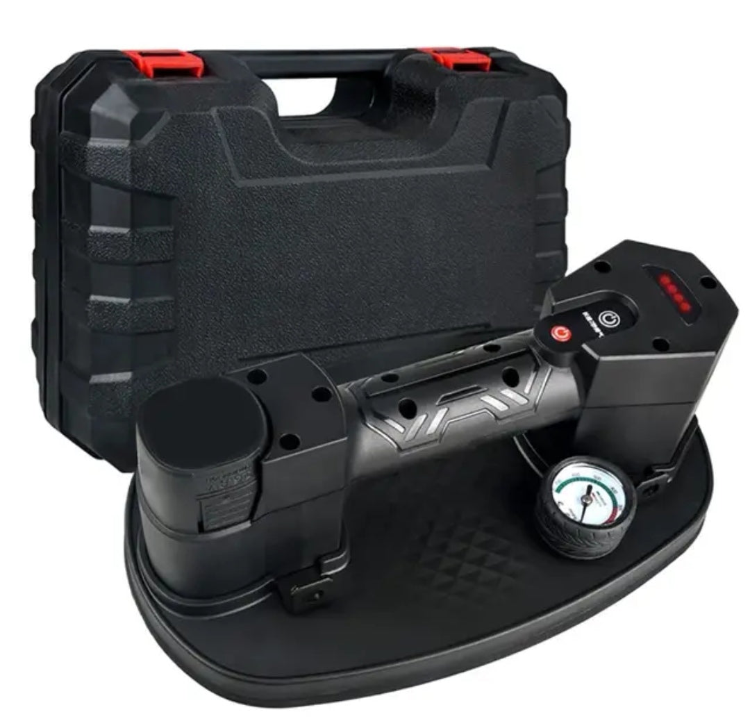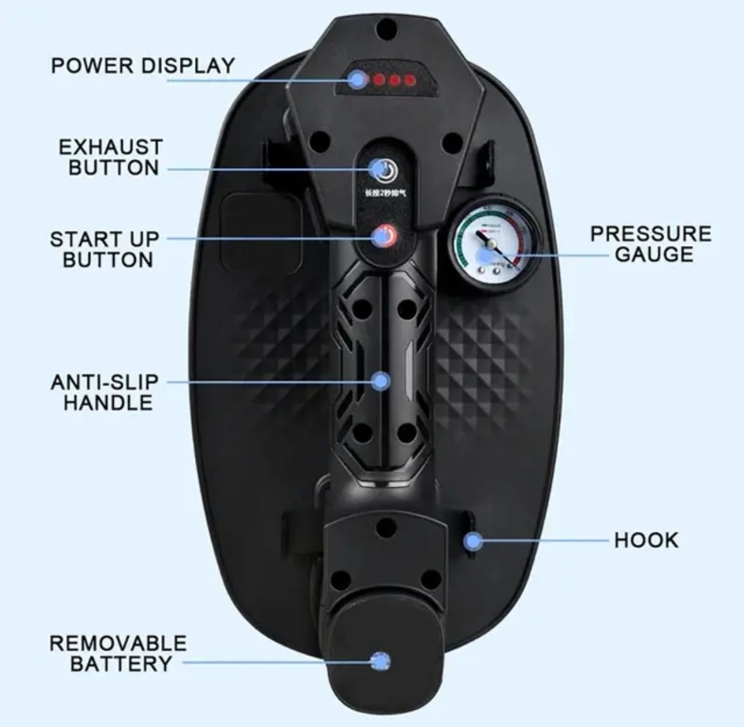 Mit integriertem Manometer und abnehmbarer Batterie.