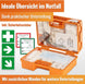 Der Koffer sollte gut sichtbar und schnell erreichbar montiert werden – z. B. im Flur, Pausenraum oder in der Nähe von Gefahrenstellen. Wandhalterung ist enthalten.
