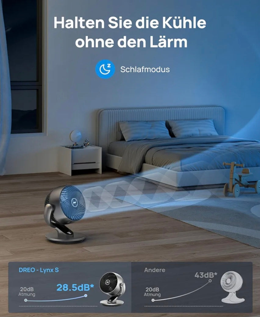 • Vollständige Raumluftzirkulation: Erleben Sie die Luftbewegung um Sie herum mit diesem intelligenten Luftzirkulator-Lüfter. Angetrieben von der Dreo WingBoost-Technologie sorgt er für weitreichende Winde von 21,3 Metern, um Ihr Schlafzimmer, Büro und Wohnzimmer zu kühlen.