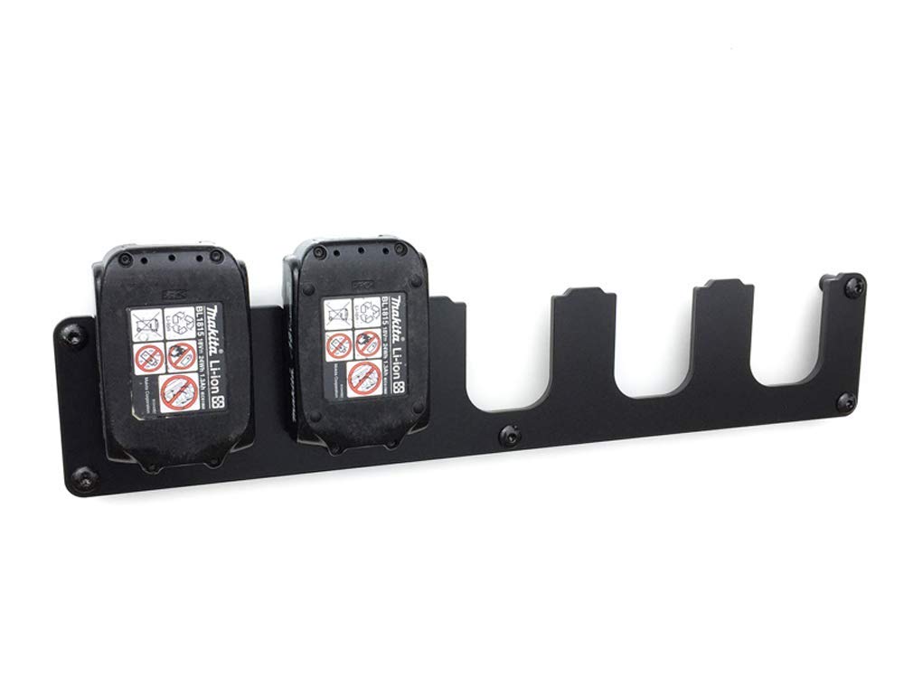 Akku Wandhalterung für Makita 14,4V & 18V Akkus - Profi Ausführung aus 4mm massivem Stahl. Langlebig durch Plastpulverbeschichtung. + Befestigungsmaterial + Abstandshalter (5-Fach)