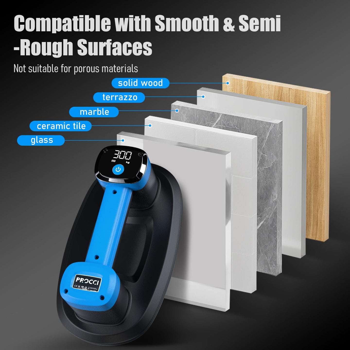 Akku Saugheber für Fliesen, Glas & Marmor – 2 Motoren, 300 KG Saugkraft, LCD-Display, 4500 mAh Akku, 26 cm Länge – für glatte & leicht strukturierte Oberflächen, bis zu 12 Std Laufzeit