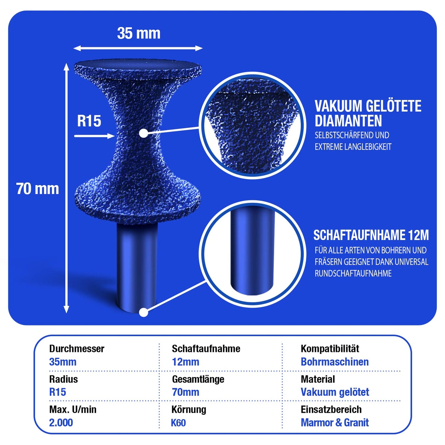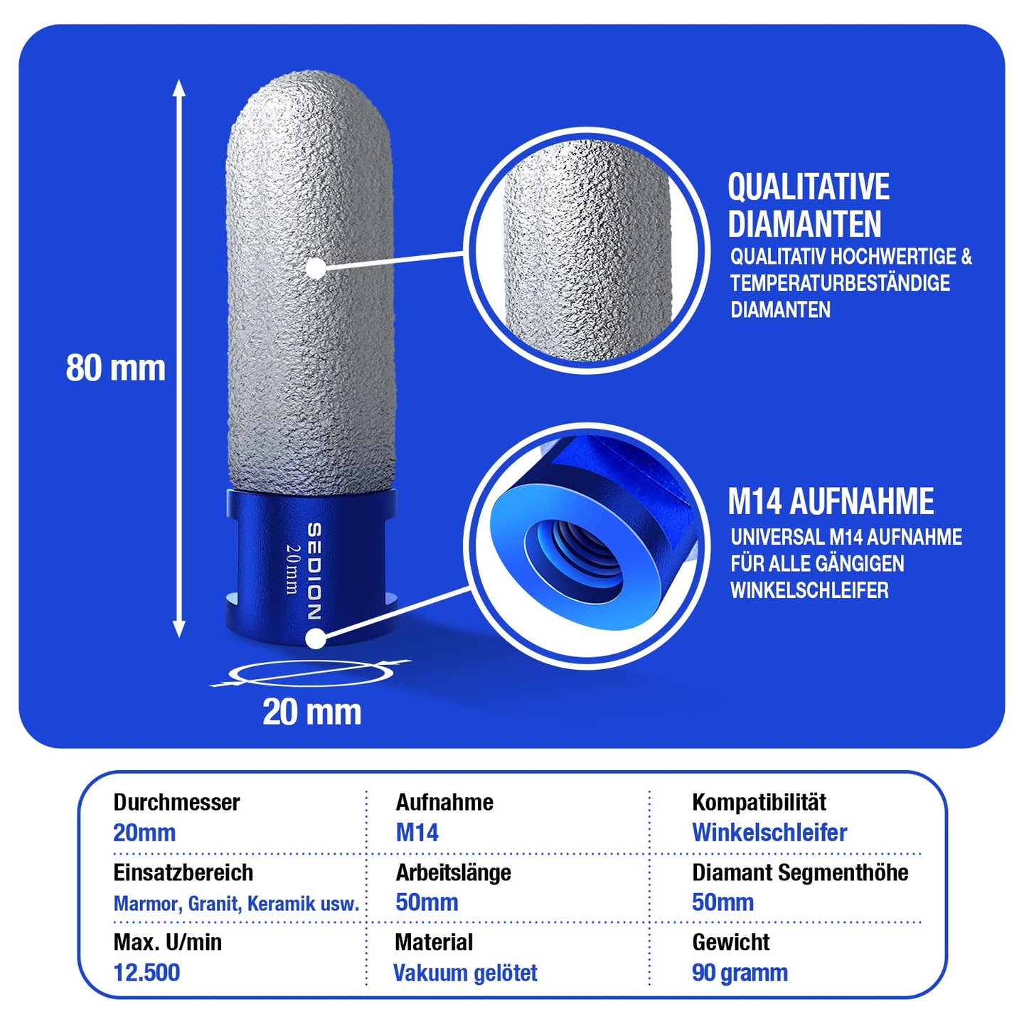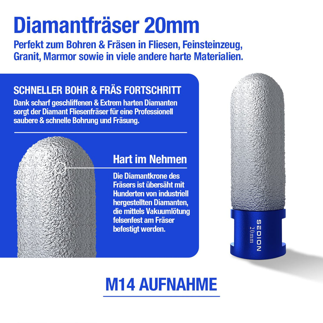 - Hohe Haltbarkeit – dank des Kühlwachses im Kern ist es selbstkühlend und selbstschärfend. Darüber hinaus verfügt es über eine lange Lebensdauer durch hochwertige und temperaturbeständige Diamanten.