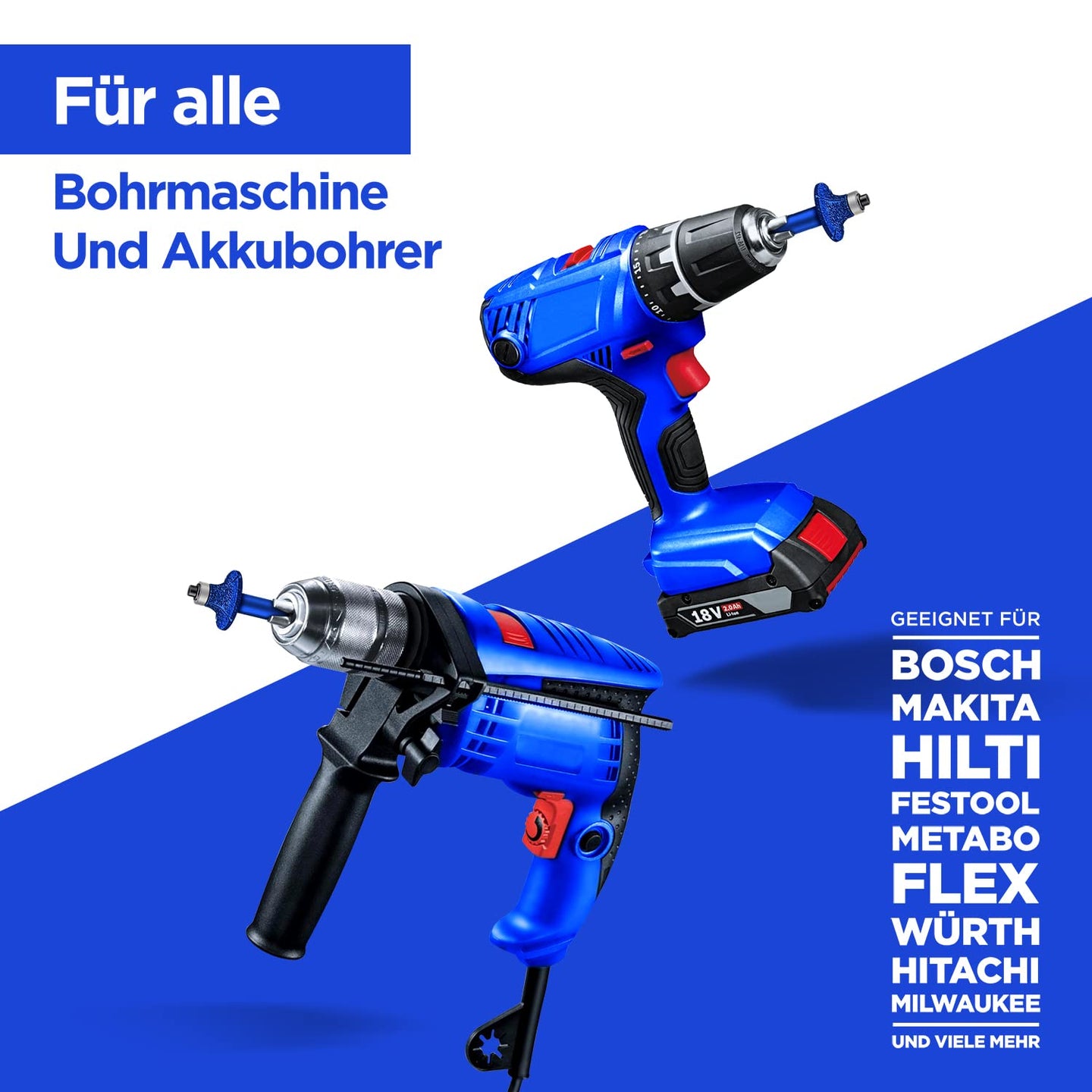 - Für alle gängigen Bohrmaschinen und Akkuschrauber, universeller Sechskantschafthalter. Zur Verwendung mit Bohrmaschinen und Akkuschraubern mit Sechskantschafthalter. Der Bohrer passt: Makita, Bosch, Metabo, Einhell, Festool, DeWalt, Parkside und mehr in Beschreibung.