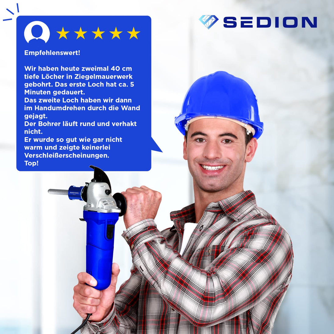 - Schneller Bohrfortschritt – dank der scharf geschliffenen und extrem harten Diamanten sorgt der Bohrer für ein sauberes und schnelles Loch. Darüber hinaus verfügt es über eine lange Lebensdauer.