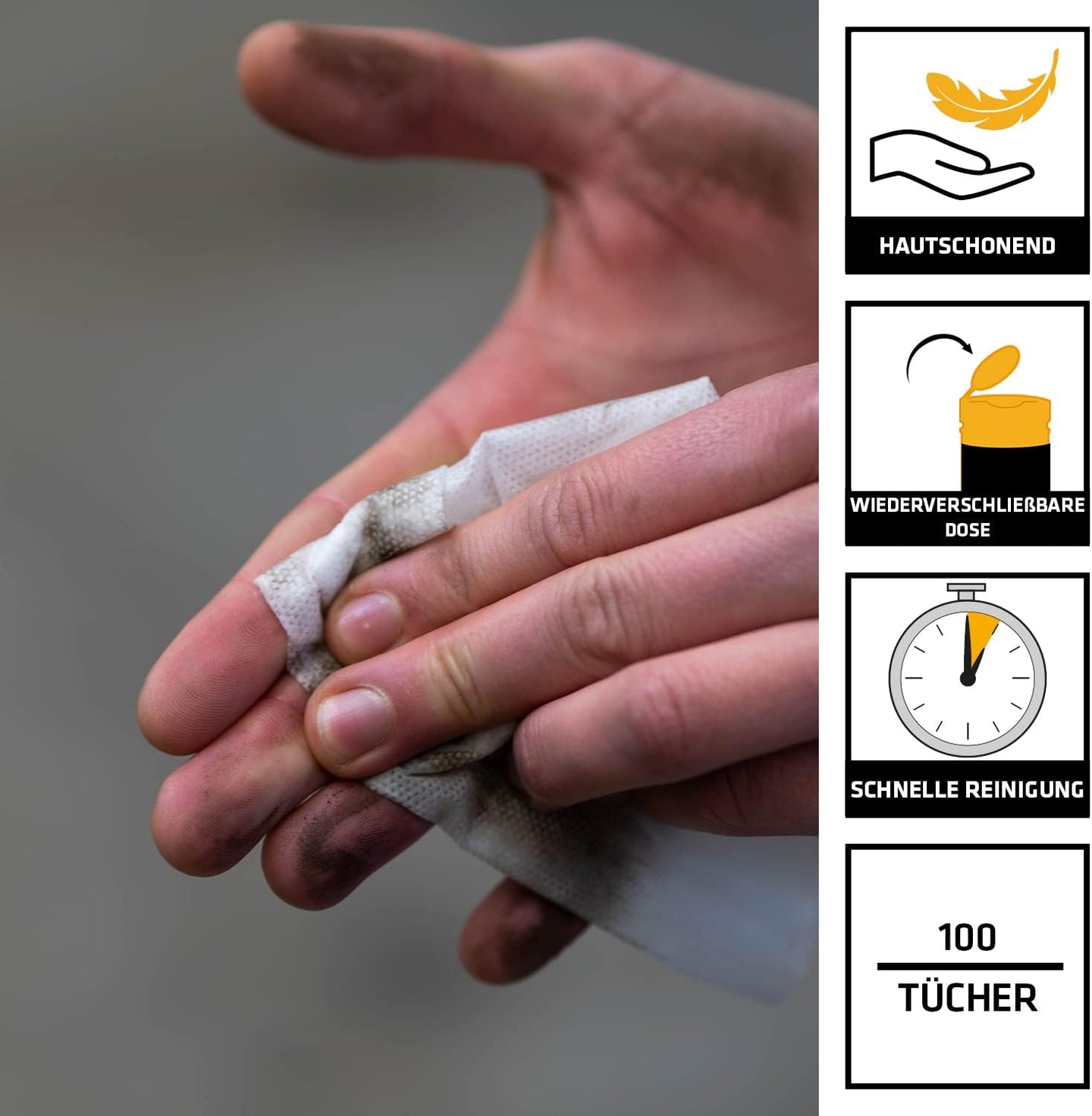 - LANGANHALTENDER VORRAT – Die große Spenderbox enthält 100 Stück feuchte Reinigungstücher, genug für viele Wochen intensiver Arbeit in der Werkstatt