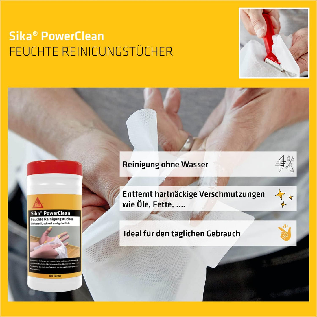 - ZUVERLÄSSIG – Dank ihrer ausgezeichneten Reinigungseigenschaften entfernen die feuchten Handtücher von Sika PowerClean sogar hartnäckigste Verschmutzungen wie z. B. Klebstoff