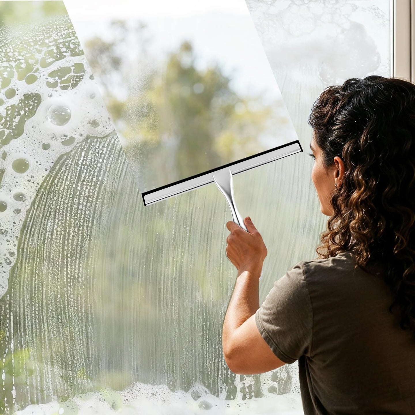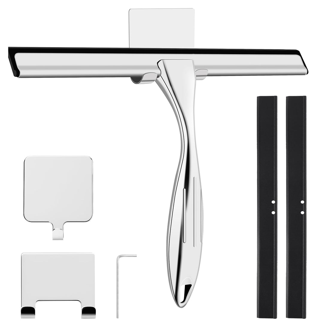 • 【Bequem zu verwenden】Der Griff des Duschabzieher Edelstahl ist ergonomisch und leicht zu greifen und zu verwenden. Das geschwungene Design kann sich gut der Form Ihrer Hand anpassen. Unser Abzieher Dusche ist sehr flexibel und hervorragend zum Abkratzen von Wasser von Glas und Fliesen einfach mit einem Wisch.