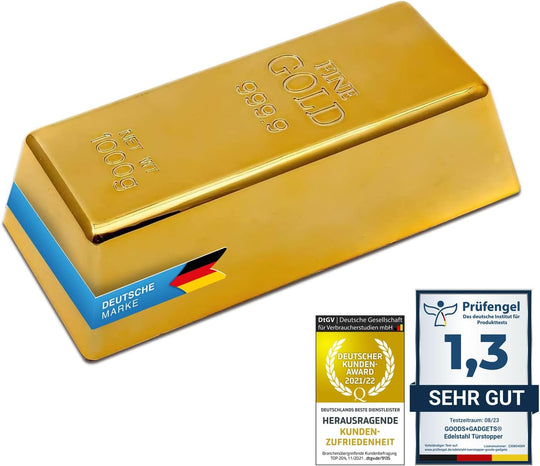 Gold Barren - Türstopper und Briefbeschwerer - Lustiger Türversteller aus künstlichen Gold täuschend echt!