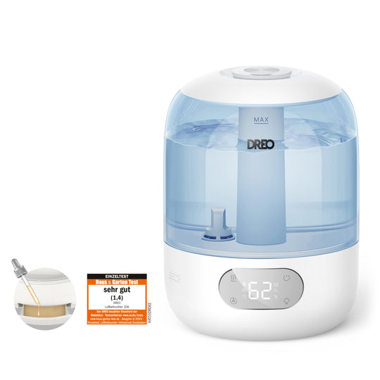 Luftbefeuchter für Schlafzimmer, Kaltnebel-Ultraschallgerät mit 30 Stunden Laufzeit, 3L Top Fill Tank, Feuchtigkeitssensor, Nachtlicht für Babys, Kindergärten, Pflanzen und Zuhause