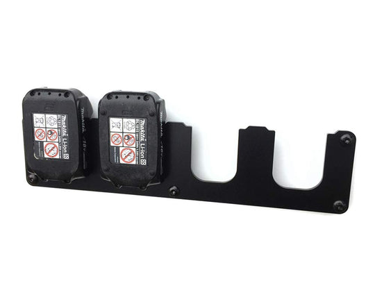 Akku Wandhalterung für Makita 14,4V & 18V Akkus - Profi Ausführung aus 4mm massivem Stahl. Langlebig durch Plastpulverbeschichtung. + Befestigungsmaterial + Abstandshalter (5-Fach)