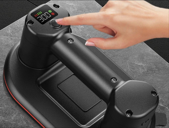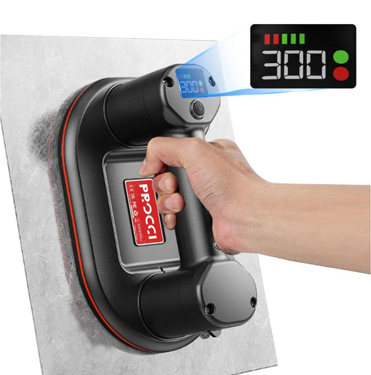 Akku Saugheber für Fliesen, Glas, Marmor, 24 cm Durchmesser, 2 Motoren, 300 kg Saugkraft, LCD-Anzeige für Saugkraft & Akkulaufzeit, 4000 mAh Akku
