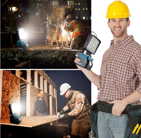 Akku Lampe passend zu Makita 18V, 48W 4800LM Kabellose Led Arbeitsleuchte Akku, Tragbare Flutlichter mit 2 Modi Helligkeit Mini Baustellen Lampe für Wartungsarbeiten, Camping
