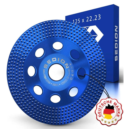 Diamantschleifscheibe Gewölbt 125 mm x 22,23 - Für Granit, Marmor, Stein, Fliesen - Diamantscheibe - Industrie Diamanten beschichtet - Sedion Premium Qualität - Diamantschleiftopf Ø 125mm