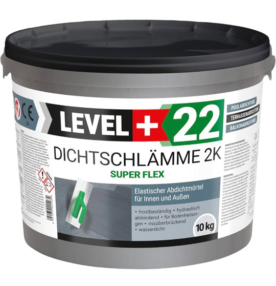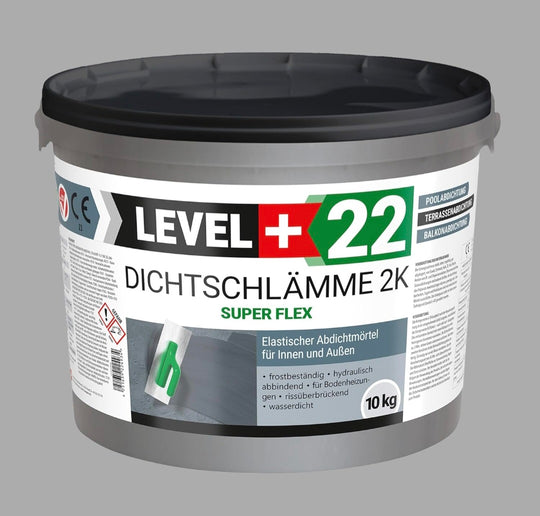 Dichtschlämme 2K Super Flex 10kg, Hochelastische Abdichtung für Innen und Außen L+22, Schwimmbad, Terrasse, Balkone, Pool, Dusche