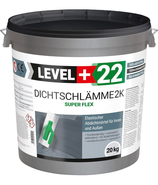 Dichtschlämme 2K Super Flex 20kg, Hochelastische Abdichtung für Innen und Außen L+22, Schwimmbad, Terrasse, Balkone, Pool, Dusche