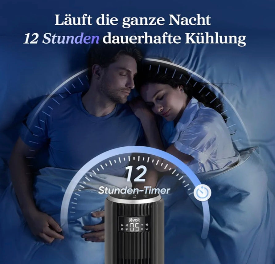- Der Ventilator ist mit intelligentem Sensor und Reglersystem ausgerüstet, um die passende Geschwindigkeit an die Schlafphasen anzupassen und eine ruhige Nacht bei der idealen Temperatur zu ermöglichen