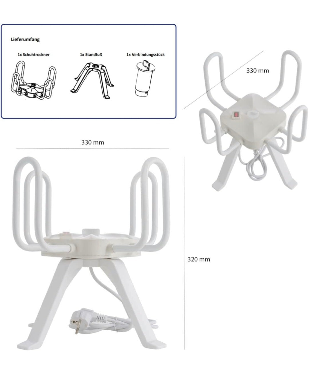 ☑️ SICHERHEIT- Der Elektrische Schuhtrockner verfügt über einen Ein-/Ausschalter und ein geerdeter Schutzstecker. Unser Elektrischer Schuhwärmer ist zudem auch noch vor Spritzwasser Geschütz.