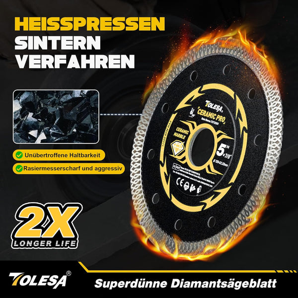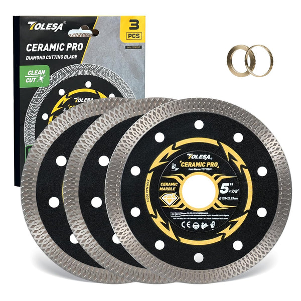 3 x Diamantscheibe 125 mm, extra dünne Diamantscheibe für Fliesen, Keramik, Marmor und Granit, für nasses oder trockenes Schneiden mit 22,23 mm Bohrung und Adapterringen 20 mm & 16 mm