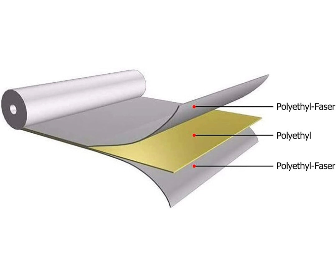 - Bestehend aus einer hochwertigen Polyethyl-Verbindung, bietet sie einen guten Schutz gegenüber Feuchtigkeit und Wasserdampf sowie eine hohe Beständigkeit gegen Chemikalien. Lässt sich leicht bearbeiten und installieren, da es besonders reiss- und perforationsfest ist.