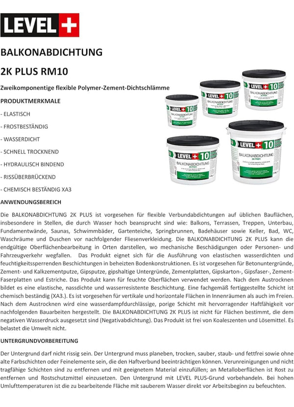 Balkonabdichtung 10 kg, flexibel Dichtschlämme 2K, Abdichtung, Terrasse, Balkone, Keller, Dusche, Bad, Schwimmbäd, RM10